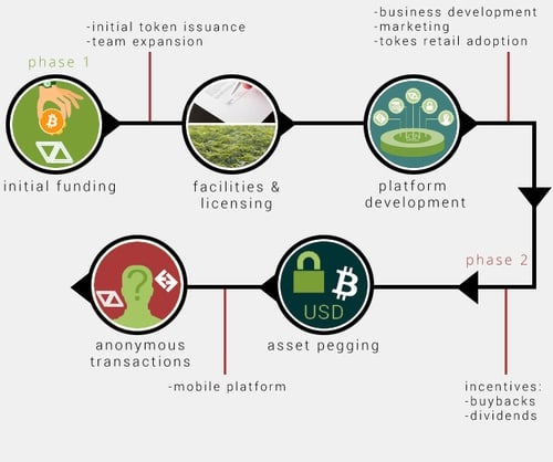 Acquisition and development of a state-of-the-art cannabis cultivation, production, and dispensary facility in the state of Nevada. Capital raised during the ICO will be dedicated to procuring the licenses and facilities necessary to operate a 100% state-legal medical marijuana enterprise.
